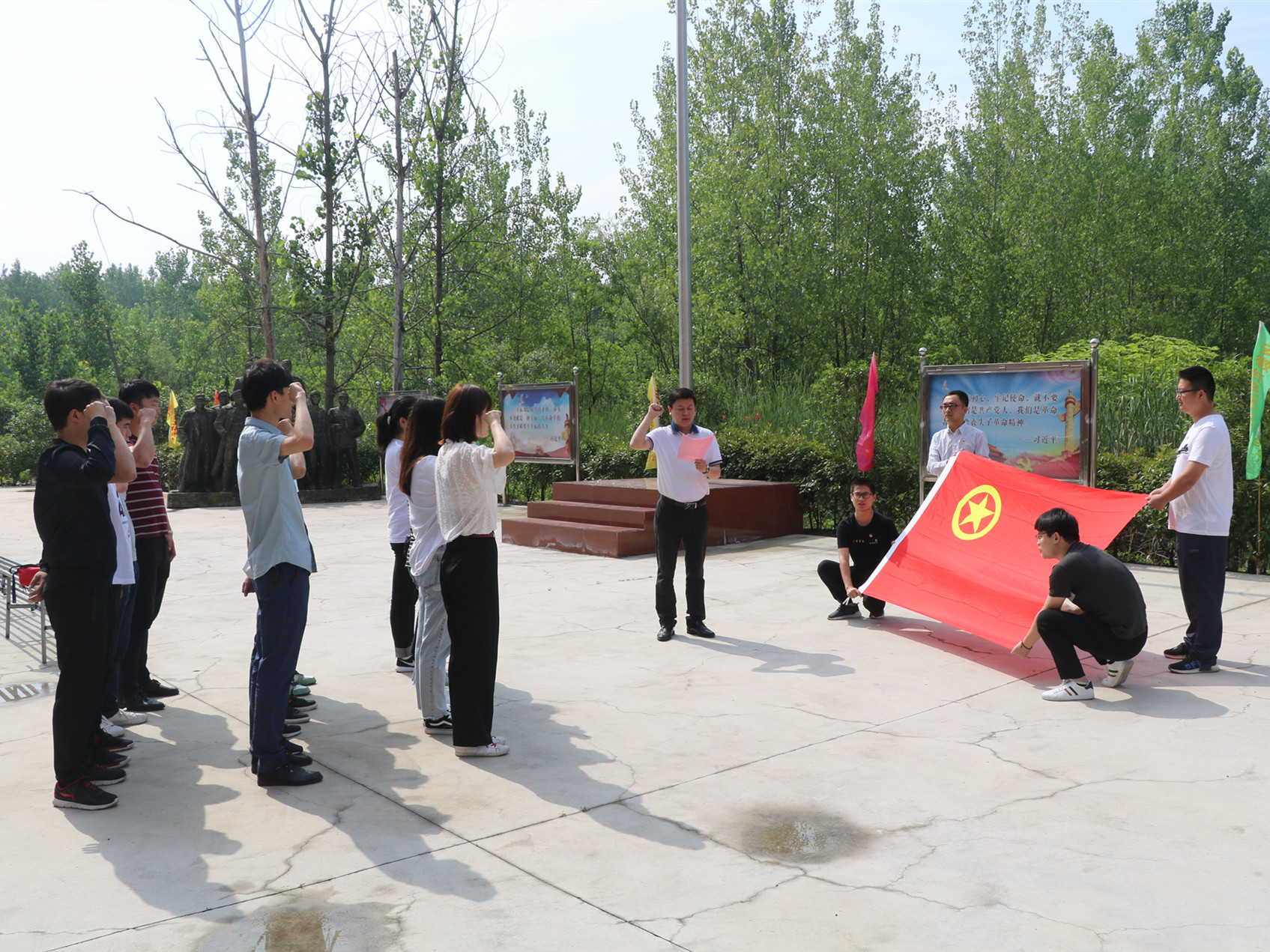 所有團(tuán)員首先在安徽安裝團(tuán)委書記王偉的帶領(lǐng)下,面對(duì)團(tuán)旗,重溫入團(tuán)誓詞。