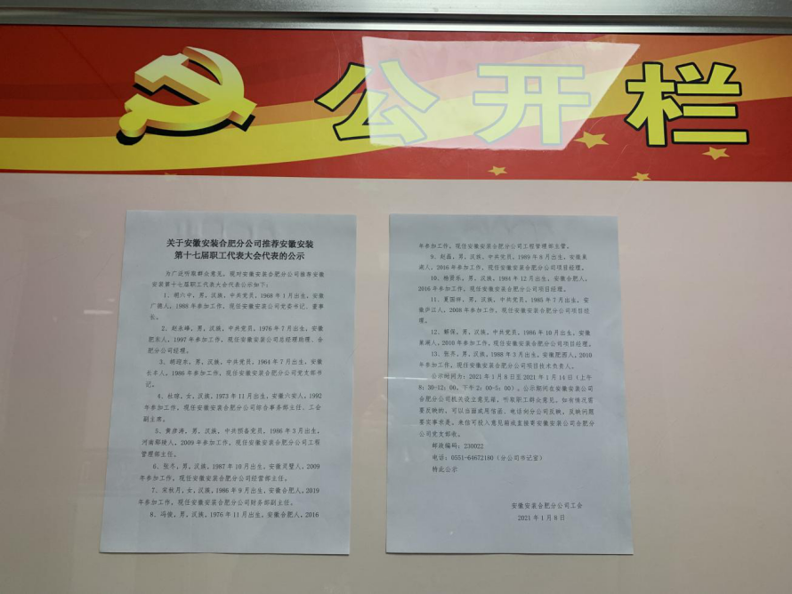 安徽安裝公司工會組織開展第十七屆職工代表大會職工代表換屆選舉工作