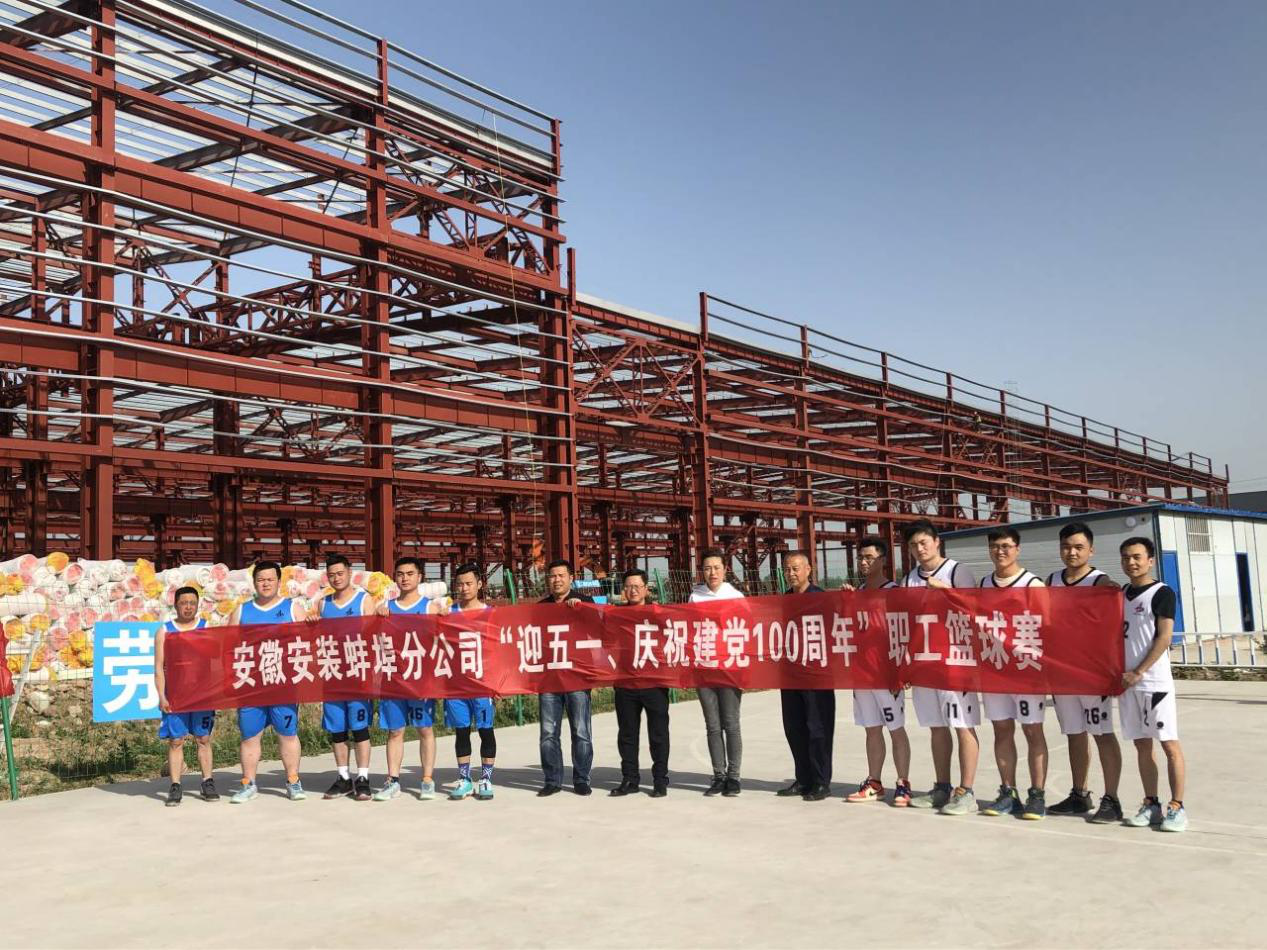 為喜迎五一,慶祝中國共產(chǎn)黨成立100周年,唱響“勞動最光榮”的主旋律,豐富職工業(yè)余文化生活,營造和諧向上、團(tuán)結(jié)奮進(jìn)的企業(yè)文化氛圍,4月29日下午由蚌埠分公司黨支部舉辦的“迎五一 慶祝建黨100周年”職工籃球友誼賽在蚌埠臨港產(chǎn)業(yè)園項(xiàng)目部室外籃球場火熱舉行。本次籃球賽兩支球隊(duì)的隊(duì)員全部為分公司各在建項(xiàng)目員工,分公司班子成員和部分員工觀看現(xiàn)場比賽。