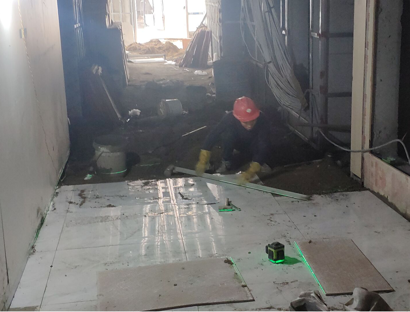 醫技樓走廊地磚鋪設施工