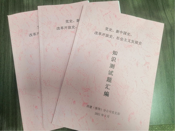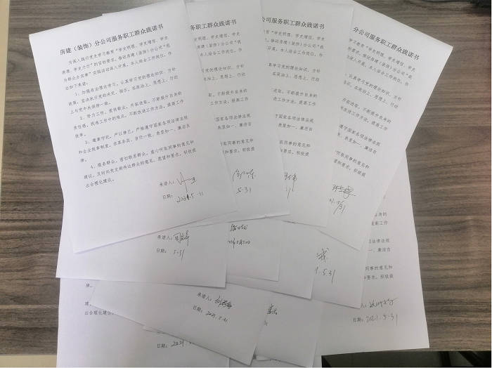 會議最后,所有與會人員簽訂了《房建(裝飾)分公司服務職工群眾踐諾書》,布置下發了《黨史、新中國史、改革開放史、社會主義發展史知識測試題匯編》。