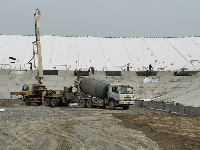 壩體混凝土面板澆筑施工現場