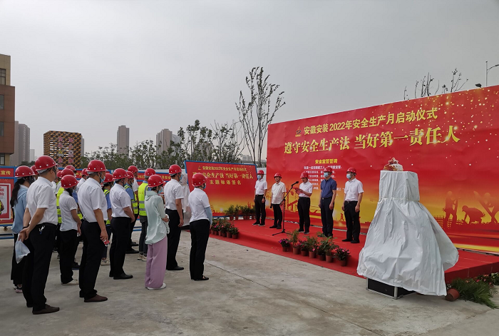 在全國第21個“安全生產月”活動到來之際,5月30日上午,安徽安裝公司2022年“安全生產月”啟動儀式在年配套1000萬臺新能源汽車及年產2億臺制冷空調壓縮機關鍵性能件制造基地項目舉行。公司黨委書記、董事長胡六中,紀委書記、工會主席李楊,副總經理趙伯平,總工程師吳繼成及機關各部門、各分公司代表參加了本次活動。