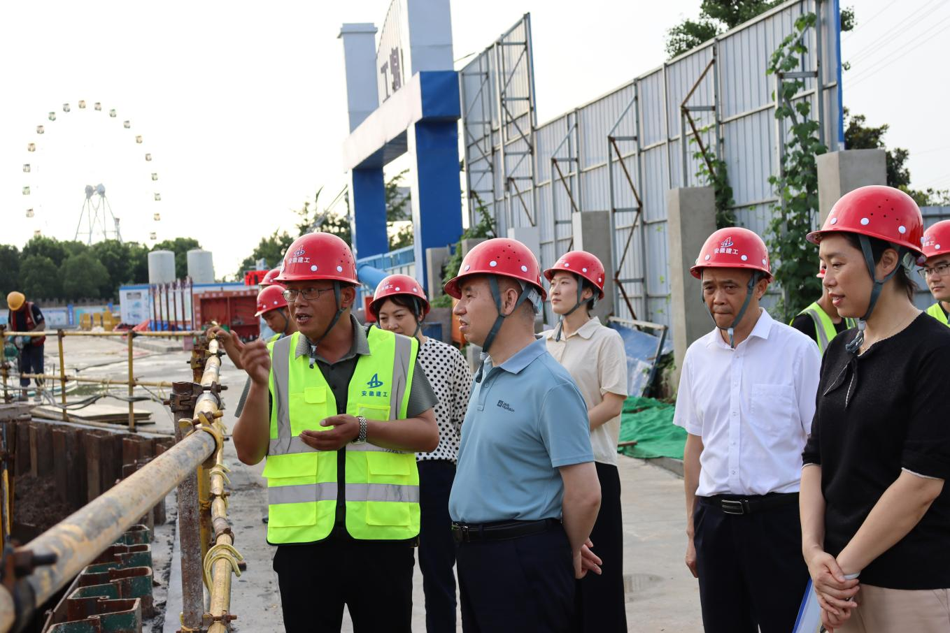 在蚌埠市公安局“三個(gè)基地”項(xiàng)目,胡六中詳細(xì)查看了現(xiàn)場(chǎng)安全文明施工、質(zhì)量管控等情況,叮囑項(xiàng)目部要在確保安全生產(chǎn)的前提下,進(jìn)一步加快施工進(jìn)度,針對(duì)近期高溫天氣,加強(qiáng)現(xiàn)場(chǎng)安全巡查,合理安排施工時(shí)間,切實(shí)做好防暑降溫工作。他要求,要加強(qiáng)項(xiàng)目成本管控,堅(jiān)持黨建引領(lǐng),扎實(shí)推進(jìn)主題教育在項(xiàng)目一線(xiàn)落實(shí)落地、走深走實(shí),做好項(xiàng)目黨建品牌創(chuàng)建和“三號(hào)聯(lián)創(chuàng)”,展示建工安裝良好形象。