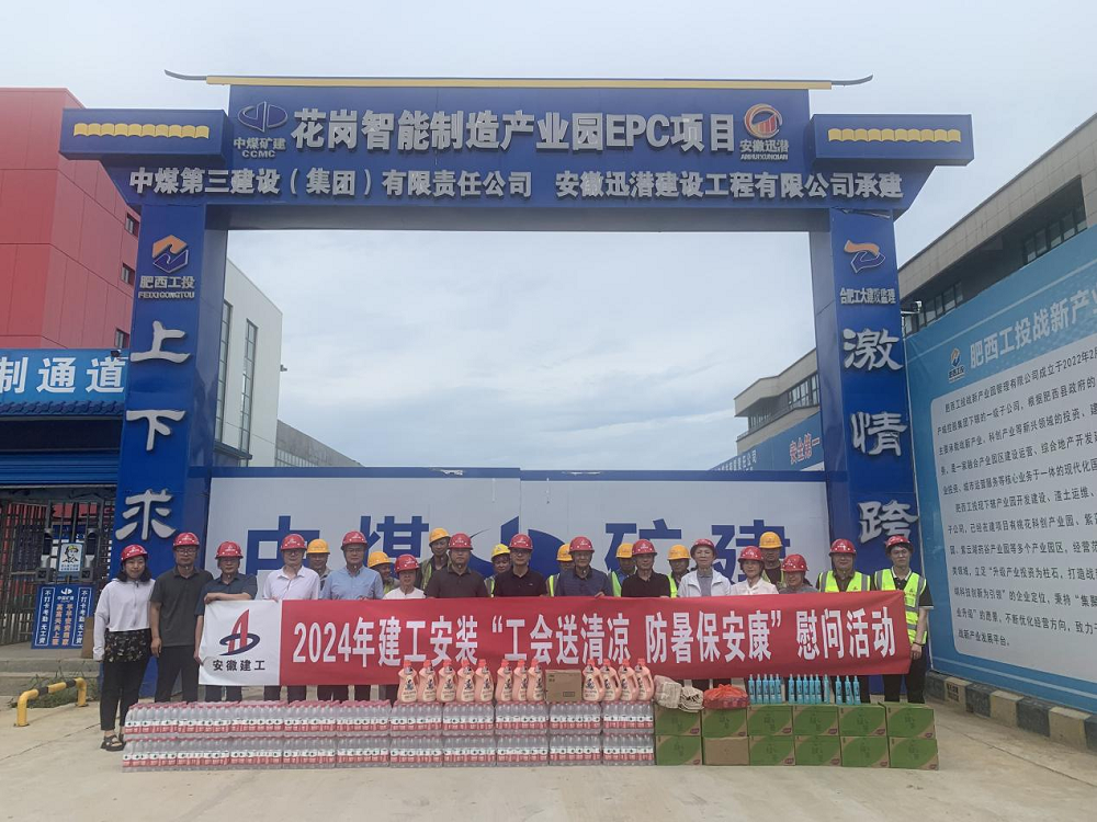 7月16—26日,建工安裝集團組織開展“工會送清涼 防暑保安康”慰問活動,此次送清涼慰問活動先后來到安慶石化新增鐵路接卸純苯設施項目、花崗智能制造產業園EPC項目電梯采購與安裝工程、合肥經開區臨湖智能制造產業園及基礎設施配套項目安裝工程施工專業分包工程、安徽深巖醫藥化工科技有限公司醫藥中間體及新材料項目廠區單體工程、阜南縣第一小學(東校區)項目、烏蘇市南苑新城小區住宅樓建設項目,給廣大一線職工送去白糖、綠豆、礦泉水、花露水、藿香正氣、十滴水等防暑降溫物品,將工會組織的關心關愛傳遞給項目一線職工,為夏季高溫安全生產和職工身體健康提供保障。