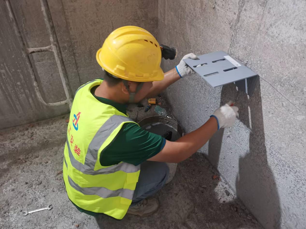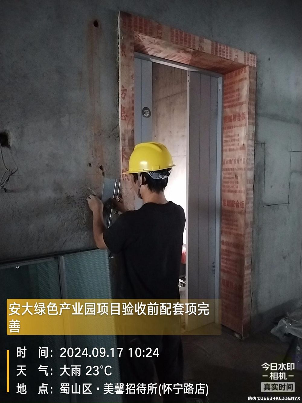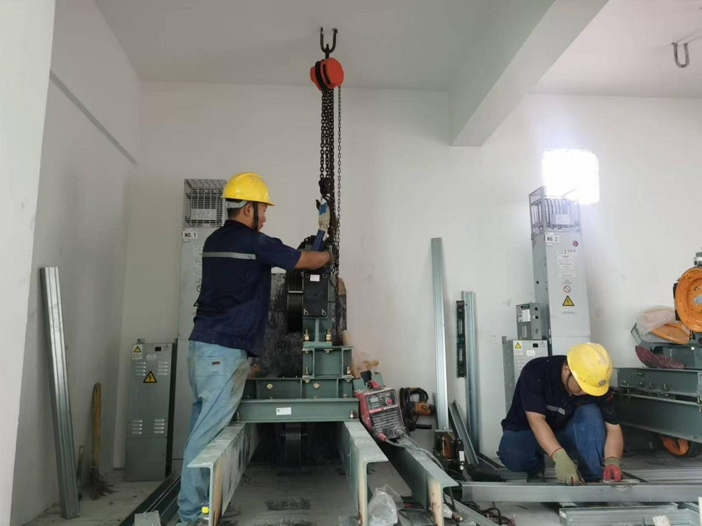 蚌埠經開區消防二中隊項目現場施工人員正在安裝電梯支架