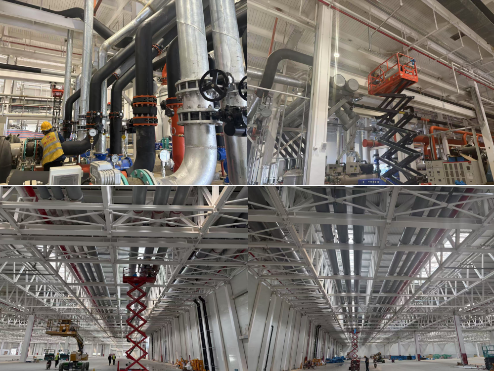 自一季度以來,項目部以“2025開局即決戰(zhàn)”的昂揚斗志,迅速掀起“大干快上”施工熱潮。對各車間、各系統(tǒng)剩余工程量展開全面梳理統(tǒng)計,同時針對剩余工程量堅持每日召開專題會,以倒排計劃為“發(fā)令槍”,對照時間節(jié)點要求各班組加班加點、不折不扣完成。截至發(fā)稿,車間一大面積施工基本完成,形象進(jìn)度完成約96%;車間二形象進(jìn)度完成約90%;車間四形象進(jìn)度完成約92%;站房一各設(shè)備管道基本安裝完成,正在調(diào)試中,形象進(jìn)度完成約90%。目前,各車間工藝生產(chǎn)均已進(jìn)場,燃?xì)忮仩t點火成功、空壓站完成試運行、工藝24h冷凍水、恒溫恒濕空調(diào)均已投入使用;各車間工藝區(qū)送電已到位、供水完成。