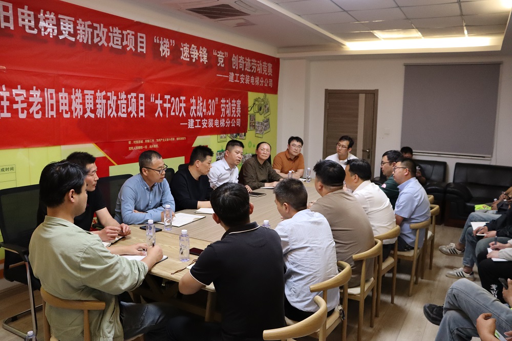 為推動(dòng)勞動(dòng)競(jìng)賽工作的有力開(kāi)展,進(jìn)一步激發(fā)廣大參建員工立足崗位建新功的勞動(dòng)激情,推動(dòng)項(xiàng)目提質(zhì)增效,順利完成項(xiàng)目目標(biāo)任務(wù),4月10日下午,建工安裝電梯分公司蚌埠2024年住宅老舊電梯更新改造項(xiàng)目開(kāi)展了以“大干20天,決戰(zhàn)4.30”為目標(biāo)的勞動(dòng)競(jìng)賽大討論活動(dòng)。電梯分公司領(lǐng)導(dǎo)班子成員、項(xiàng)目部管理人員、參建單位及勞務(wù)班組代表參加會(huì)議。