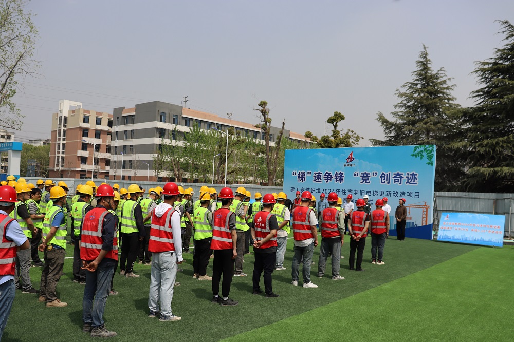 為貫徹集團(tuán)和公司兩級(jí)職代會(huì)精神,落實(shí)公司勞動(dòng)競(jìng)賽活動(dòng)相關(guān)工作要求,加快工程建設(shè)進(jìn)度,不斷提高項(xiàng)目管理和建設(shè)水平,4月10日,建工安裝電梯分公司蚌埠2024年住宅老舊電梯更新改造項(xiàng)目舉行了以“梯”速爭(zhēng)鋒 “競(jìng)”創(chuàng)奇跡為主題的勞動(dòng)競(jìng)賽啟動(dòng)儀式,正式吹響了“大干20天,決戰(zhàn)4.30”勞動(dòng)競(jìng)賽的奮進(jìn)號(hào)角。蚌埠市城市投資控股有限公司代表、分公司班子成員、項(xiàng)目部管理人員、各參建單位代表及作業(yè)人員共130余人參加活動(dòng)。